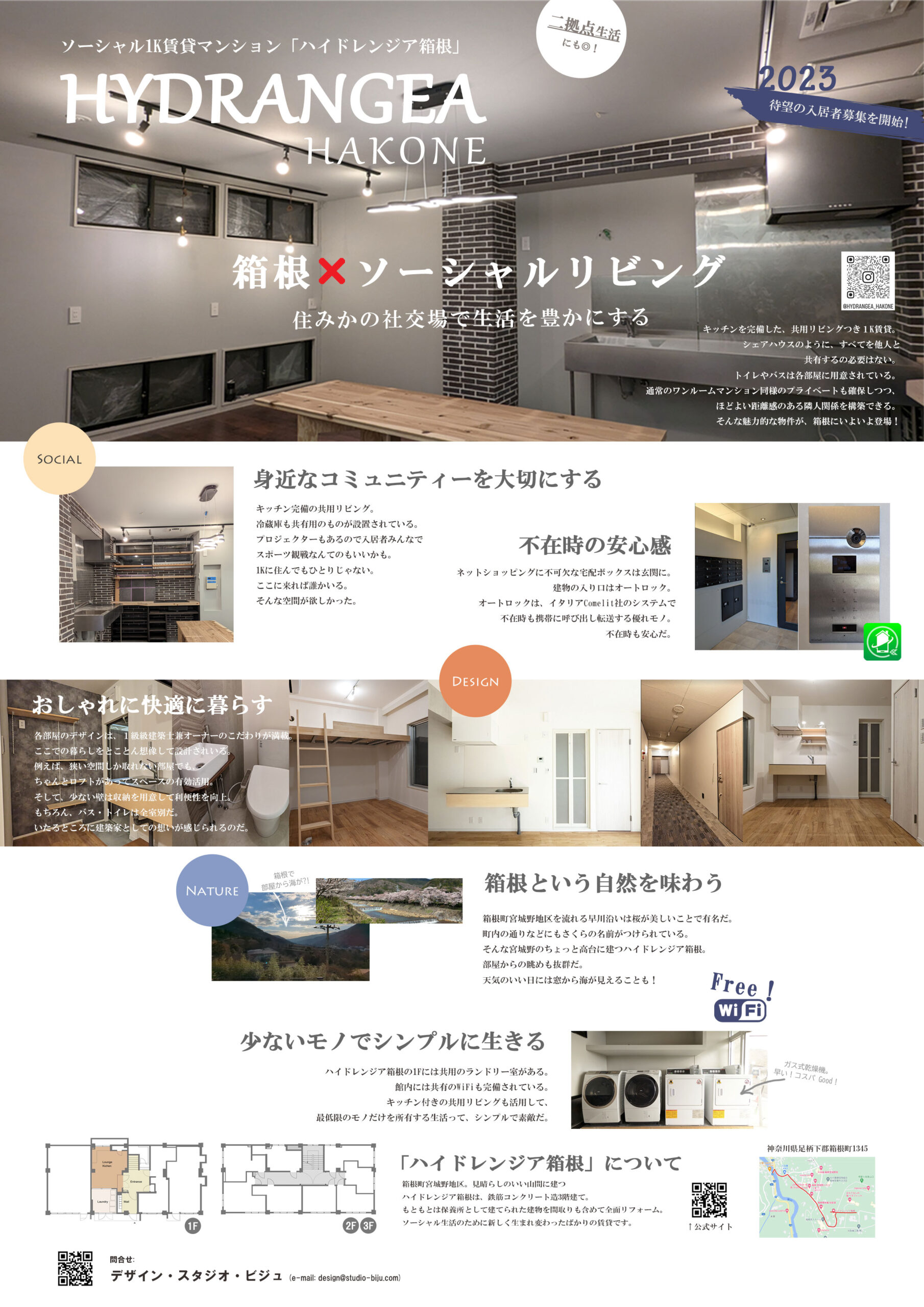 ハイドレンジア箱根は、神奈川県箱根町の宮城野地区にある鉄筋コンクリート造の賃貸マンションである。2019年に現オーナーに変わりリノベーションを開始。2023年4月より本格的に賃貸開始。